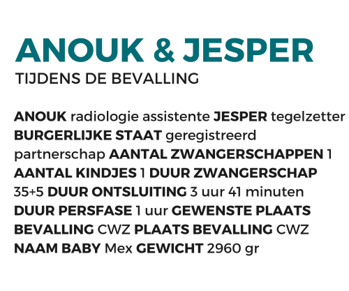 Ik mocht na een tijdje gaan persen. Ze begeleidden me goed en coachten wanneer ik moest zuchten. Jesper hield stevig mijn hand vast. Mijn moeder stond naast me en ze hielpen me er doorheen. Op een gegeven moment vertelde de gynaecoloog dat ik nog één keer moest persen. Als de baby dan niet kwam zou er toch een knip gezet moeten worden. Dit wilde ik liever niet. Met de volgende weeën gaf ik alle kracht die ik nog in me had en daar was hij dan… 16 december 2022 om 12.08 uur is onze gezonde zoon Mex geboren, 2960 gram en 51 cm lang.