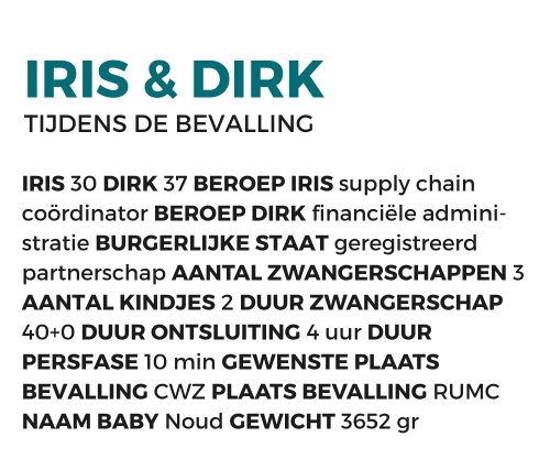 Drie weken gingen voorbij. Met 40 weken grapte mijn vriend tijdens het eten “nou de uitgerekende datum gaan we ook niet meer redden”. Waarop ik antwoordde “als de bevalling net zo snel gaat als bij Noor, dan redden we het net”. Niet wetende dat een uur later de weeën zouden beginnen.